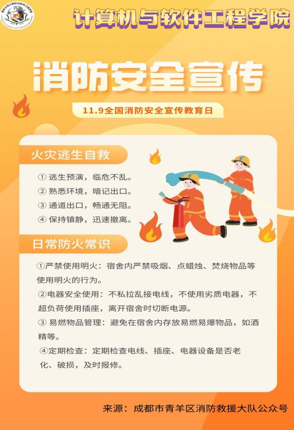 为提高消防安全教育覆盖率,学院组织学生会成员发挥专业技能,设计制作了消防安全教育海报及传单。海报和传单内容主要来源于“中国红十字会总会备灾救灾中心”等机构的官方网络平台,传单内容涵盖校园防火常识、初期火灾扑救方法、火场逃生技巧等多个方面,内容权威且有效。宣传海报张贴于学院办公室公示栏及学生寝室宣传栏,供师生查看学习;宣传传单则通过晚自习宣讲、走访寝室等形式发放给学院全体学生。