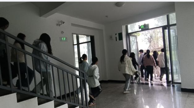 学院组织学生在宜宾校区第二教学楼组织开展消防疏散演练活动。演练开始前,学生会成员讲解火灾疏散的实用技能和注意事项;演练中,同学们沉着冷静,秩序井然,按照疏散路线安全有序撤离,活动达到预期效果。
