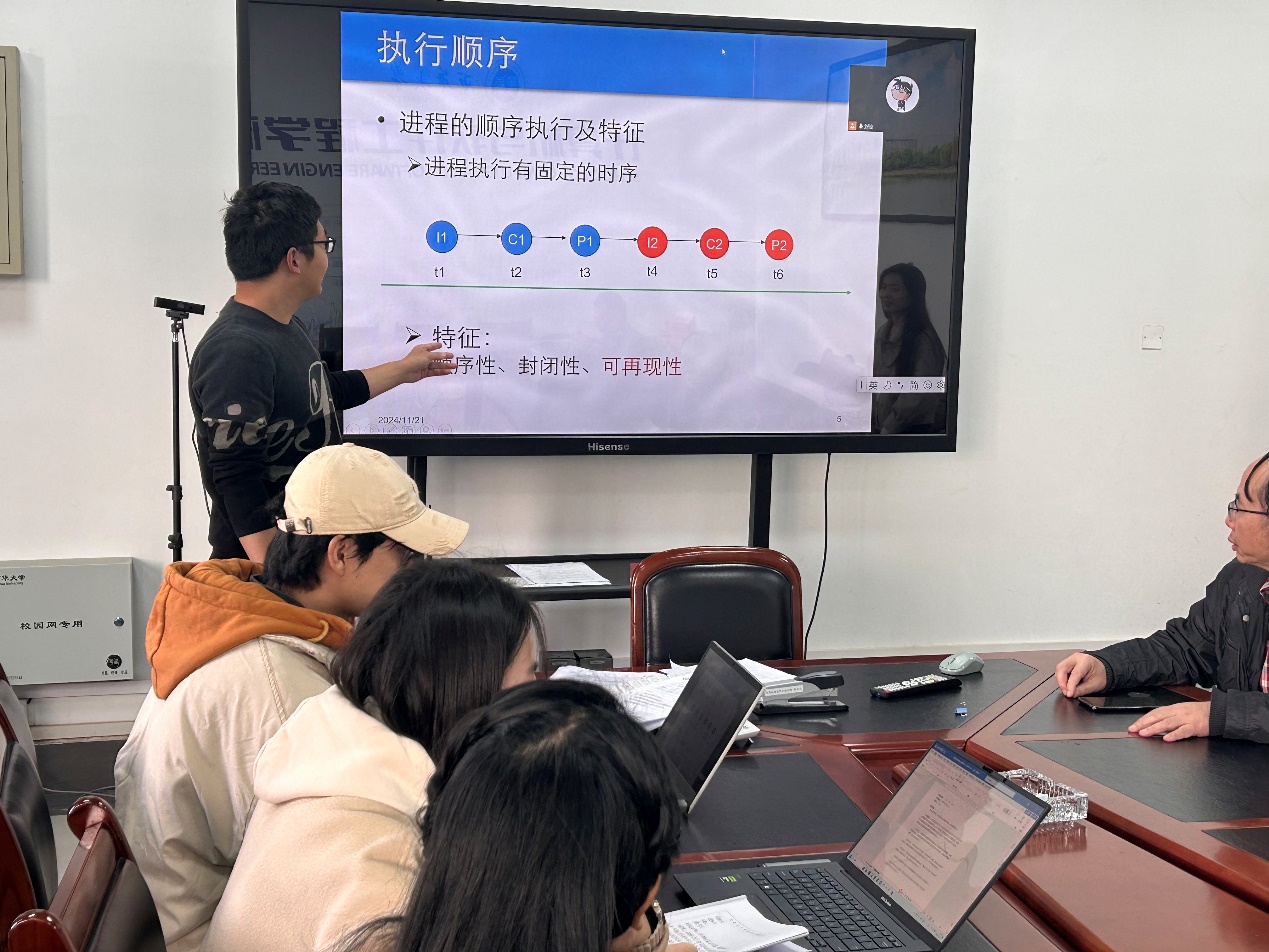 活动伊始,新进教师程亚民围绕“进程管理”主题进行了试讲,内容涵盖进程的定义、执行顺序及特征、多进程并发及总结等模块。他通过逻辑清晰的讲解构建了知识框架,展示了初步的教学设计思路。在随后的评议环节,与会教师针对课堂组织、教学细节设计提出了建设性意见。例如,建议明确PPT标题、以图示方式解释抽象概念,并通过具体案例过渡到重点内容,增强学生的理解与兴趣。同时,大家还探讨了课程目标与教学活动的有机结合方法,强调课堂设计对抓住学生注意力的重要性。程亚民表示,这次试讲为自己提供了宝贵的改进思路,同时也为其他新进教师提供了有益借鉴。