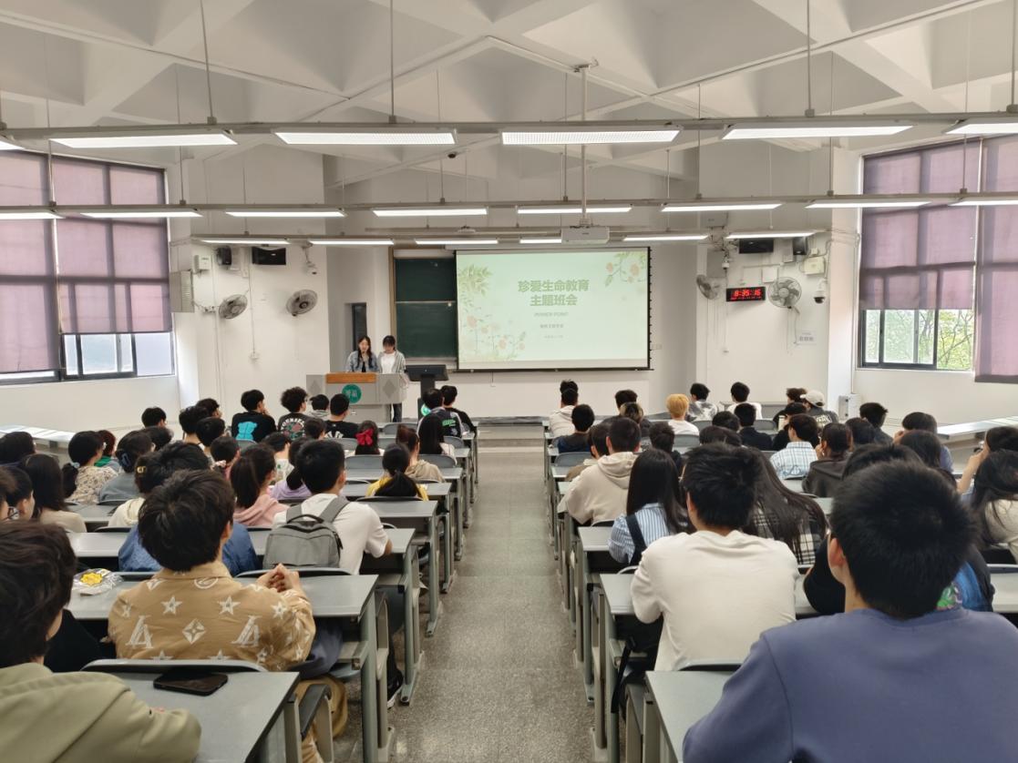 班会上,辅导员老师向同学们介绍了班会背景和目标,引导同学们正视生命尊重生命。同时,各班心理委员们通过生动的案例分析和小测验,和同学进行互动讨论,引导学生们深入思考生命的价值和意义,帮助他们识别并应对生活中的负面情绪和压力。