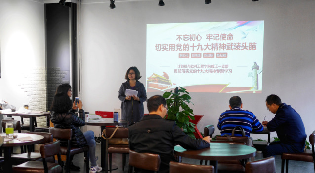 自十九大胜利召开以来,伟德bv国际体育掀起高涨的学习热潮。11月16日下午,计算机与软工工程学院教工一支部全体党员在学生创新创业中心开展十九大精神的专题党课学习。党课由支部书记魏冬梅主讲。