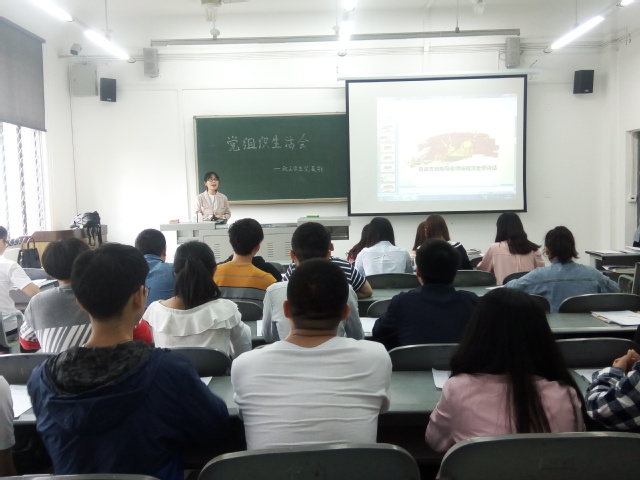 组织生活在全体党员同志整齐嘹亮的国歌声中拉开序幕。接着,杨丽萍老师致辞,提出在新形势下学生党支部应高度重视党支部建设工作,结合新时期的时政热点和工作实际,做好每学期的工作计划与总结,认真策划每一次的组织生活和定期开展党支部开展特色活动。利用易班、微信等网络平台做好宣传工作,加强学院学生党支部建设的规范化、制度化、科学化,更好地发挥基层党组织的战斗堡垒和模范先锋作用。